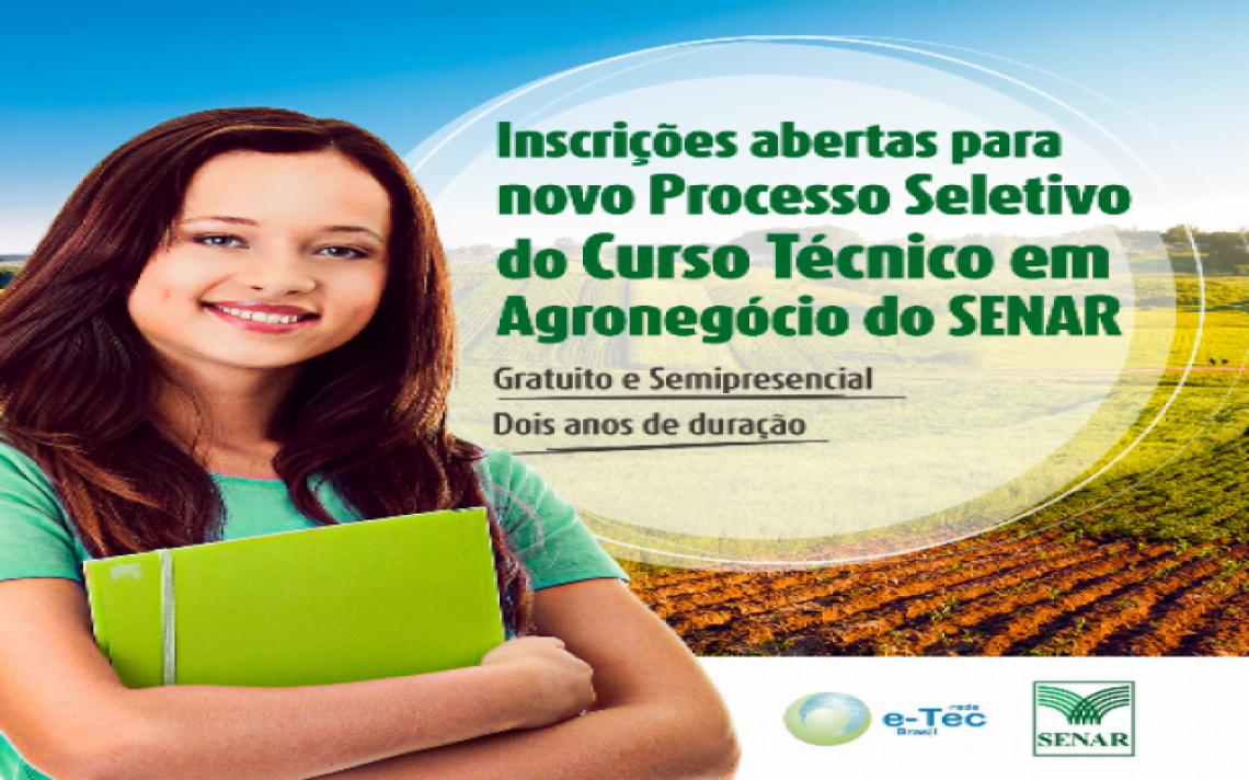 Quem busca formação de nível técnico no setor agropecuário, mas não pode frequentar aulas presenciais em uma escola regular, tem agora nova chance de conquistar a meta. O Serviço Nacional de Aprendizagem Rural (SENAR) abriu nessa segunda-feira, 04/07, inscrições para a seleção do seu Curso Técnico em Agronegócio, na modalidade semipresencial e inteiramente gratuito. Para se inscrever, o único requisito é ter o Ensino Médio completo.