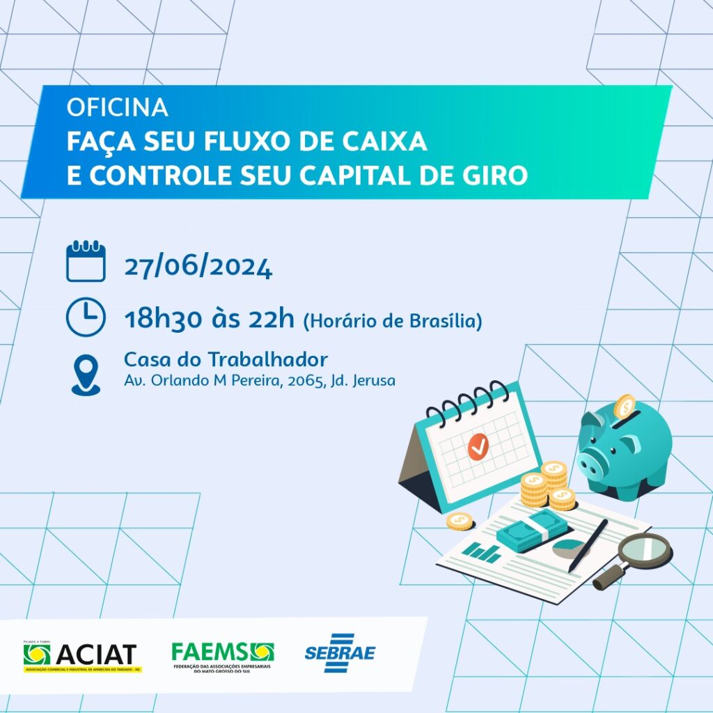 Aparecida do Taboado (MS) – Acontecerá nesta quinta-feira (27) a partir das 18h30 a oficina gratuita “Faça seu Fluxo de Caixa e Controle seu Capital de Giro” na Casa do Trabalhador.