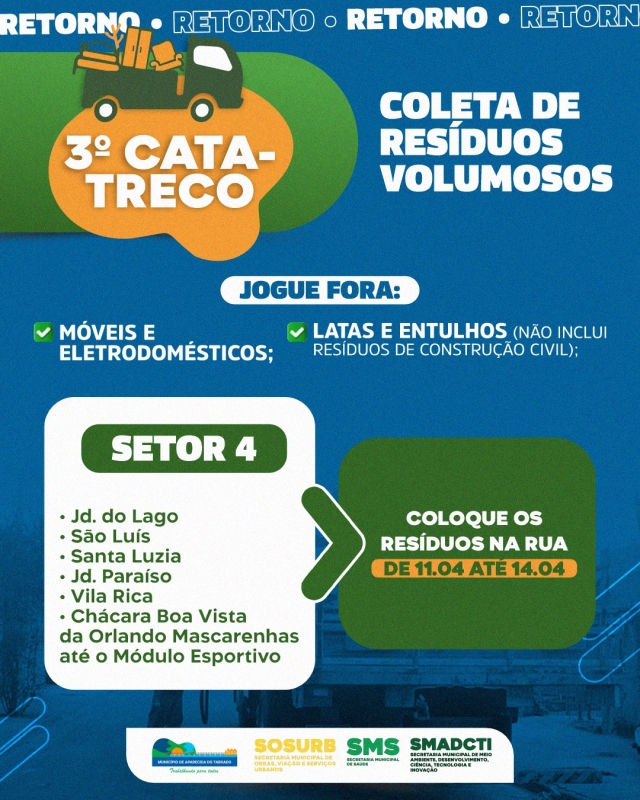 A operação ‘Cata-Treco’ não é um mutirão isolado, mas uma ação que acontecerá durante todo o ano de 2025. A informação é de que o despejo irregular (colocar o lixo na calçada fora das datas em questão) pode acarretar em multa ao infrator. Além disso, é importante destacar que o serviço de coleta não incluirá o recolhimento de resíduos da construção civil.