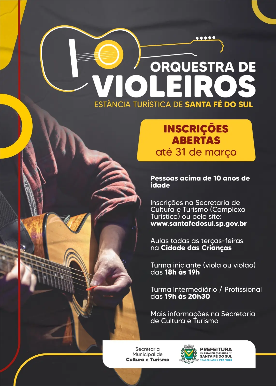 A Prefeitura da Estância Turística de Santa Fé do Sul, por meio da Secretaria Municipal de Cultura e Turismo, está com inscrições abertas para quem deseja fazer parte da Orquestra de Violeiros do município. A iniciativa busca incentivar a música sertaneja de raiz e valorizar os talentos locais.