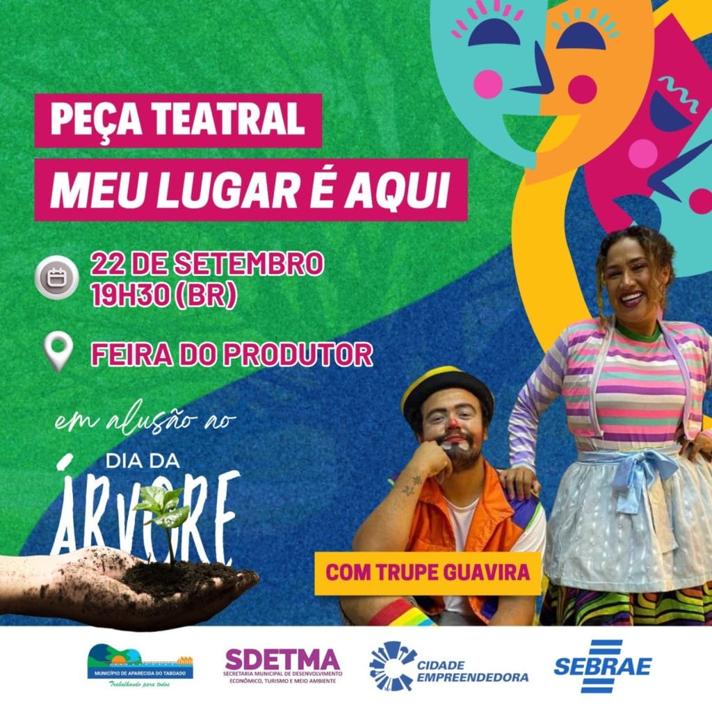 Já no dia 22, na Feira do Produtor “Augusto Carvalho”, a partir das 19h30, será apresentada uma peça teatral “Meu lugar é aqui”, com a Trupe Guavira, também em alusão ao Dia da Árvore, que é festejado em 21 de setembro.