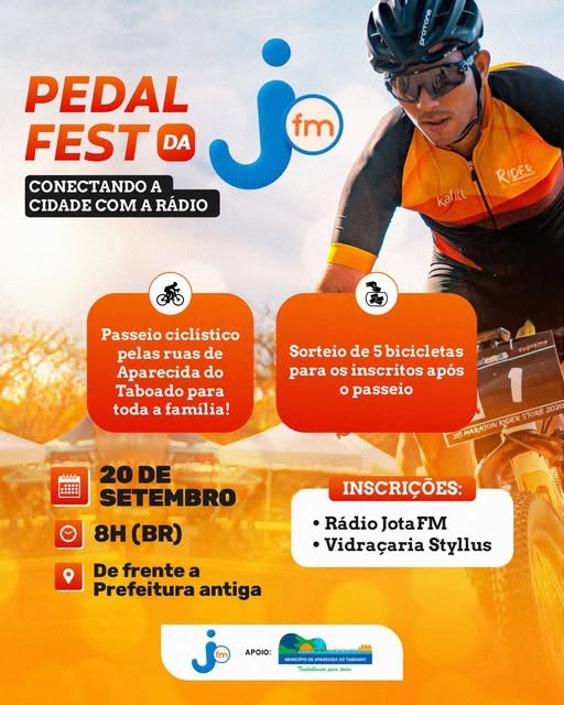 A Prefeitura de Aparecida do Taboado apoia a realização do Pedal Destaque da Rádio JFM, um evento que promete colorir as ruas da cidade com energia, saúde e muita alegria. O passeio ciclístico será realizado no próximo dia 20 de setembro, às 8h, com saída em frente à antiga Prefeitura.