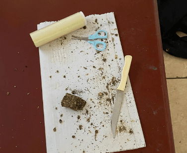 Com o jovem foram encontradas 16 porções de maconha, já embaladas para a venda, totalizando 265g, uma quantia em dinheiro de R$374,00 em notas fracionadas, 02 celulares e vários utensílios utilizados para o corte e embalo das drogas.