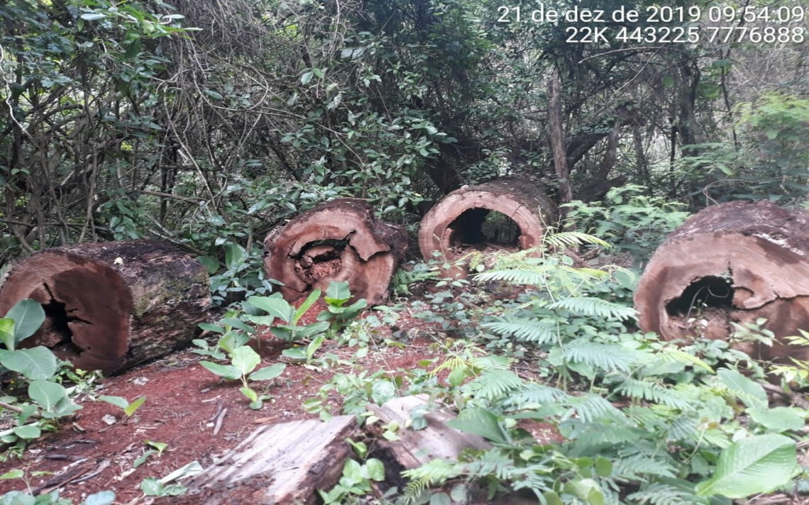 Policiais Militares Ambientais de Aparecida do Taboado receberam há um mês, registro de ocorrência na Polícia Civil, de uma empresa de celulose, de que elementos estariam arrombando cercas e realizando exploração e furto de madeira em áreas protegidas de reserva legal em fazendas de sua propriedade. No dia 19 deste mês, a PMA autuou um elemento detido pela Polícia Civil, com duas motosserras com numeração raspada, em R$ 2.000,00. Ele seria o suspeito de estar furtando e explorando a madeira, mas não havia provas.