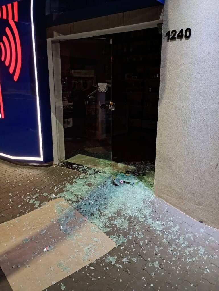 De acordo com informações do boletim de ocorrência do 13º Batalhão de Polícia Militar, por volta das 2h25, a guarnição foi acionada via Copom depois que um denunciante informou que a porta de vidro do estabelecimento Alle Celulares estava quebrada.