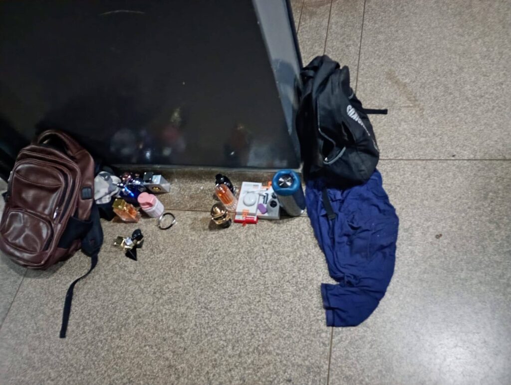 Durante as diligências, os militares encontraram dois suspeitos que tentaram esconder mochilas contendo parte dos produtos furtados e roupas usadas durante a ação. Segundo a polícia, ambos já possuem passagens por crimes anteriores.