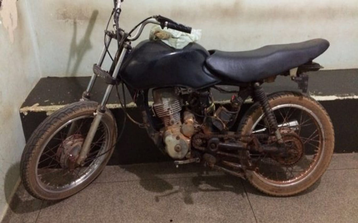 A moto recuperada foi apresentada na Delegacia de Polícia Civil a fim de serem executados os procedimentos judiciais pertinentes.