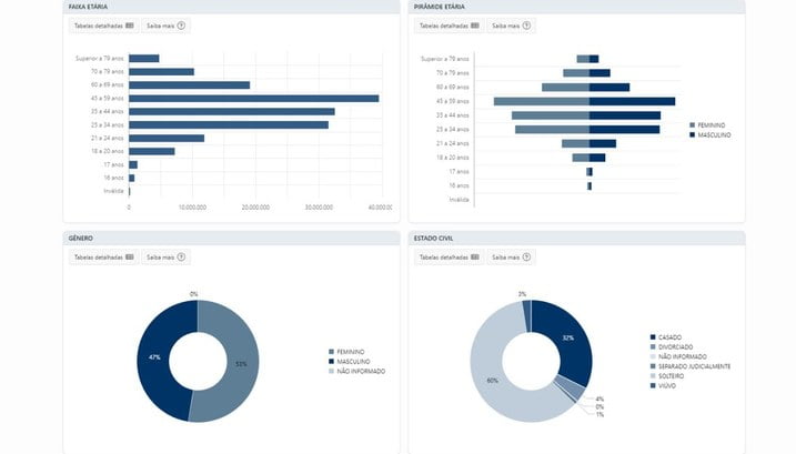 MaisO Tribunal Superior Eleitoral (TSE) disponibiliza ao público a plataforma de estatísticas eleitorais. Nela é possível obter dados sobre candidaturas, mesários, eleitorado, prestação de contas, processos, além de outros números. Ferramenta disponibiliza