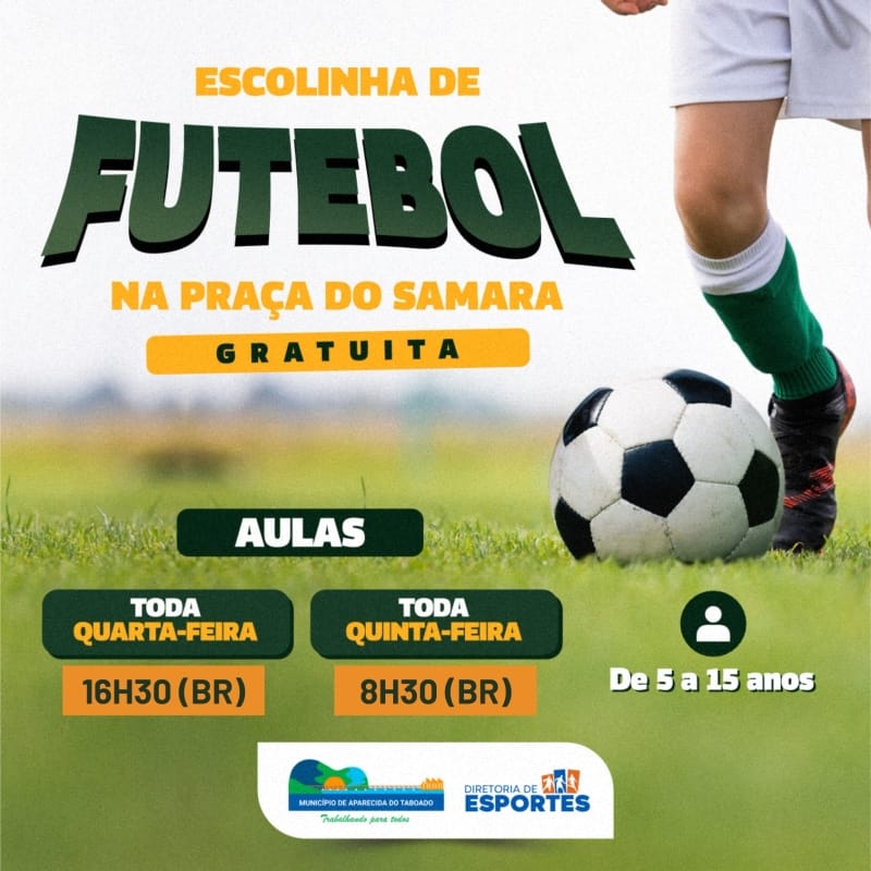 Crianças e adolescentes de 5 a 15 anos podem participar, além de aprender os fundamentos do futebol, terão momentos de atividade física, excelente para a saúde física e mental. A administração municipal ainda oferece a escolinha no módulo esportivo, que acontece nas segundas, quartas e sextas às 9 horas, com a finalidade de tirar nossas crianças das ruas e ofertar lazer e esporte para todos.