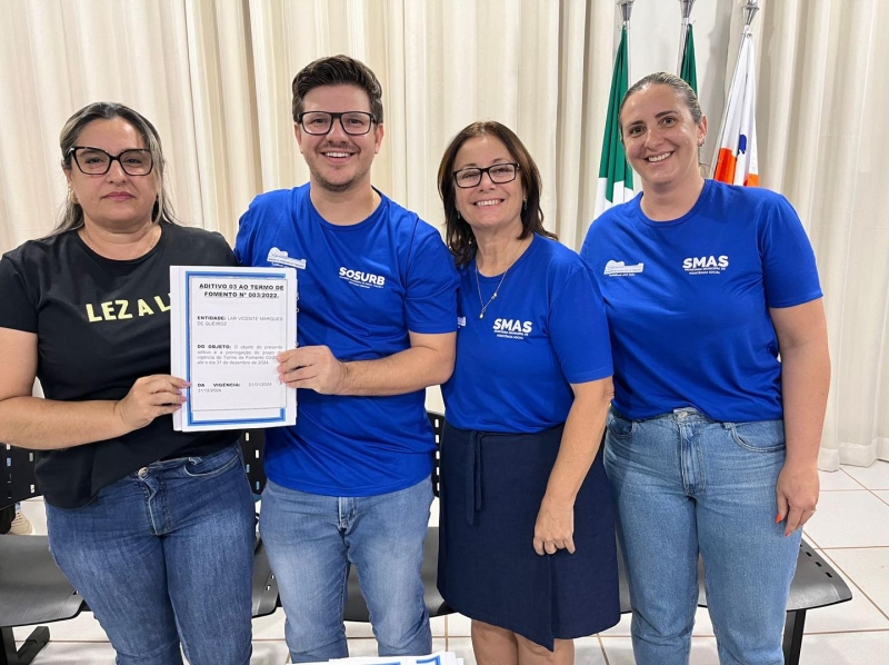 A cerimônia de assinatura dos convênios ocorreu no gabinete do Executivo e contou com a presença dos representantes das instituições beneficiadas, bem como do secretário de Governo, Ber Galter, da secretária de Assistência Social, Ariadne Queiroz, da secretária de Saúde Daiane Pupin, e das secretárias adjuntas de Saúde Amanda Lima e de Assistência Social Michaele Mignoli.