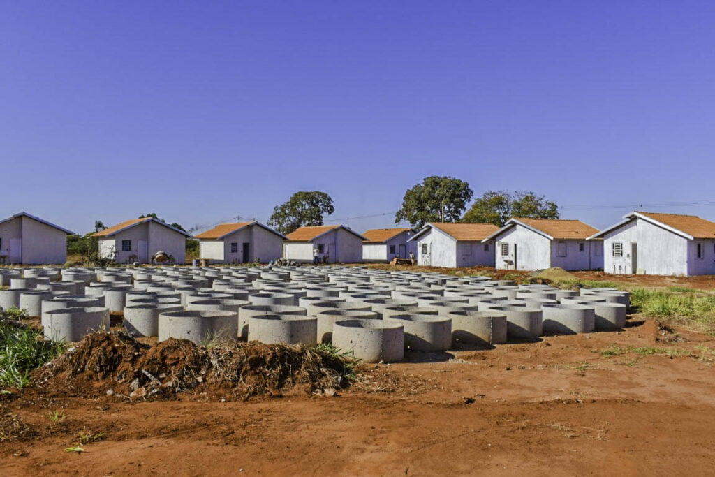 A construção de 64 casas para famílias de baixa renda, parceria da Prefeitura de Selvíria com o Governo do Estado do Mato Grosso do Sul, continua no Município. E a expectativa é que elas sejam entregues em breve.