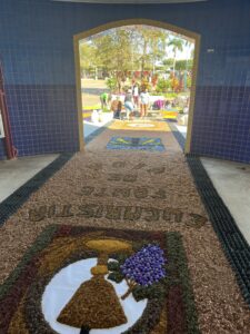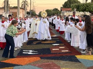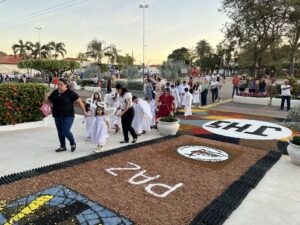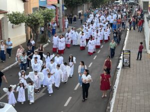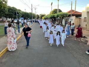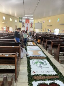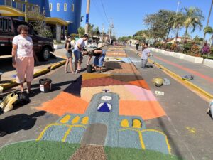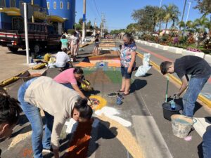 Aparecida do Taboado (MS) – A comunidade católica participou, nesta quinta-feira (19), da tradicional programação de Corpus Christi. As atividades começaram pela manhã, com a confecção dos tapetes em frente ao Santuário Nossa Senhora Aparecida.
