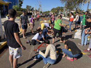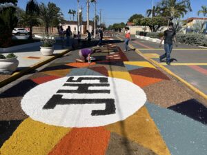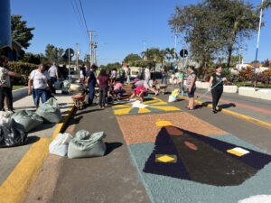 Na parte da manhã, o Costa Leste News conversou com o diácono Tiago, que explicou o significado da tradição: “A comunidade está reunida para confeccionar o tapete de Corpus Christi, por onde passará a procissão com Jesus Eucarístico. Para a Igreja, este é um dia solene, e os tapetes fazem parte de uma tradição que celebra a passagem de Jesus entre o povo.”