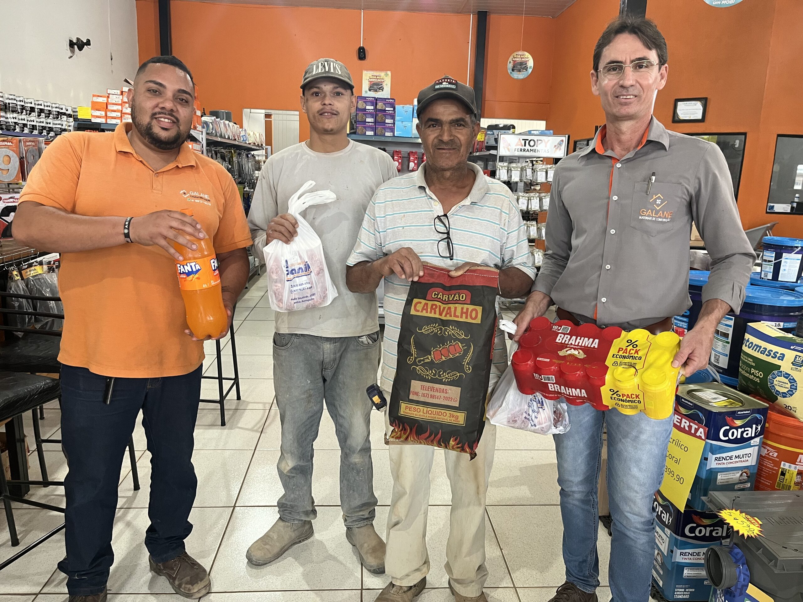 A Galane Casa & Construção vem premiando esses profissionais todas as sextas-feiras, eles lavam para casa um kit churrasco que inclui 3 kg de carne (linguiça, frango e bovina), uma caixa de cerveja e carvão. O sorteio é feito no programa do Fernandinho, na Rádio Cultura FM, no dia 8 de agosto, o premiado foi Aparecido Pereira Borges. Ele agradeceu a iniciativa da GALANE em reconhecer a importância da categoria para o desenvolvimento da cidade.