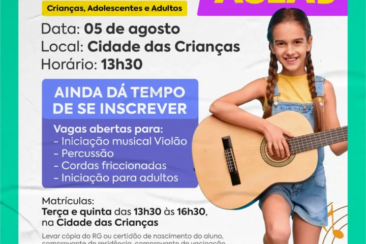 MaisA Secretaria de Cultura e Turismoda Estância Turística de Santa Fé do Sul informa que na próxima segunda-feira, dia 5 de agosto, às 13h30, o Projeto Guri retomará suas atividades. O encontro