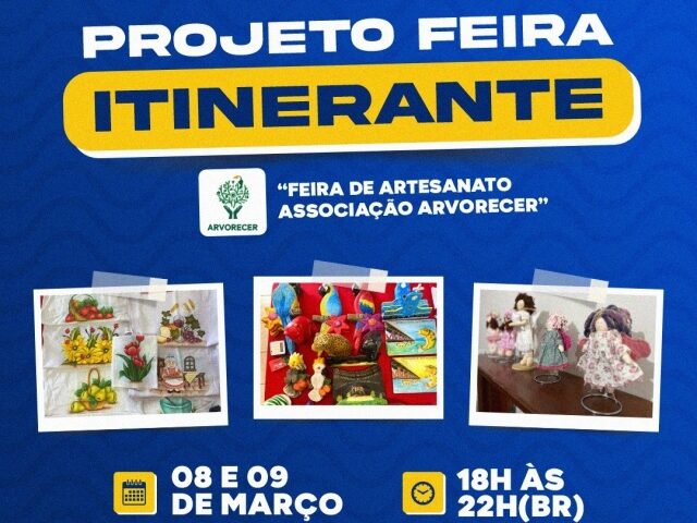 Nos dias 8 e 9 de março, das 18h às 22h, a Escola de Dança Manoel Jasques, em frente à Praça da Matriz, será o palco da Feira de Artesanato promovida pela