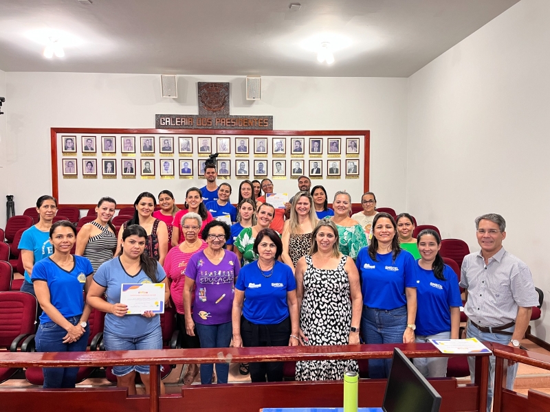 A secretária de Educação Ana Rita Paião de Oliveira, a secretária adjunta Maria Dalva, coordenadores de Educação e Diretores das escolas, estiveram presentes no encerramento do Projeto, que ocorreu no plenário da Câmara Municipal de Vereador.
