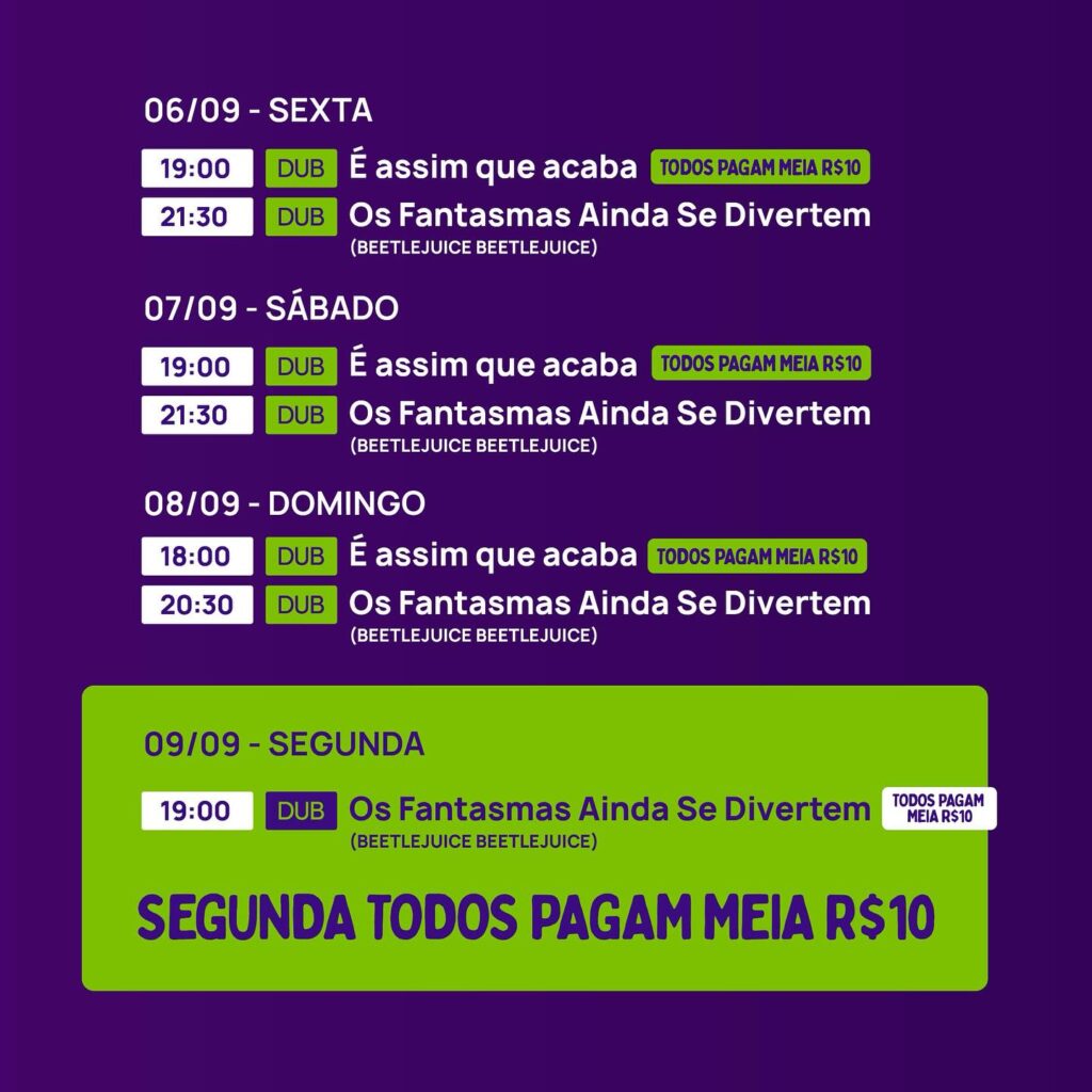 A programação do final de semana também contará com o filme “É Assim que Acaba” que terá preço especial e todos pagarão R$10,00 no ingresso.