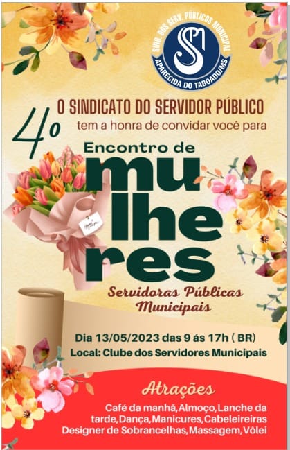 Aparecida do Taboado (MS) – Acontecerá no sábado (13) a 4ª edição do Encontro de Mulheres promovido pelo Sindicato dos Servidores Públicos Municipais em comemoração ao Dia das Mães.