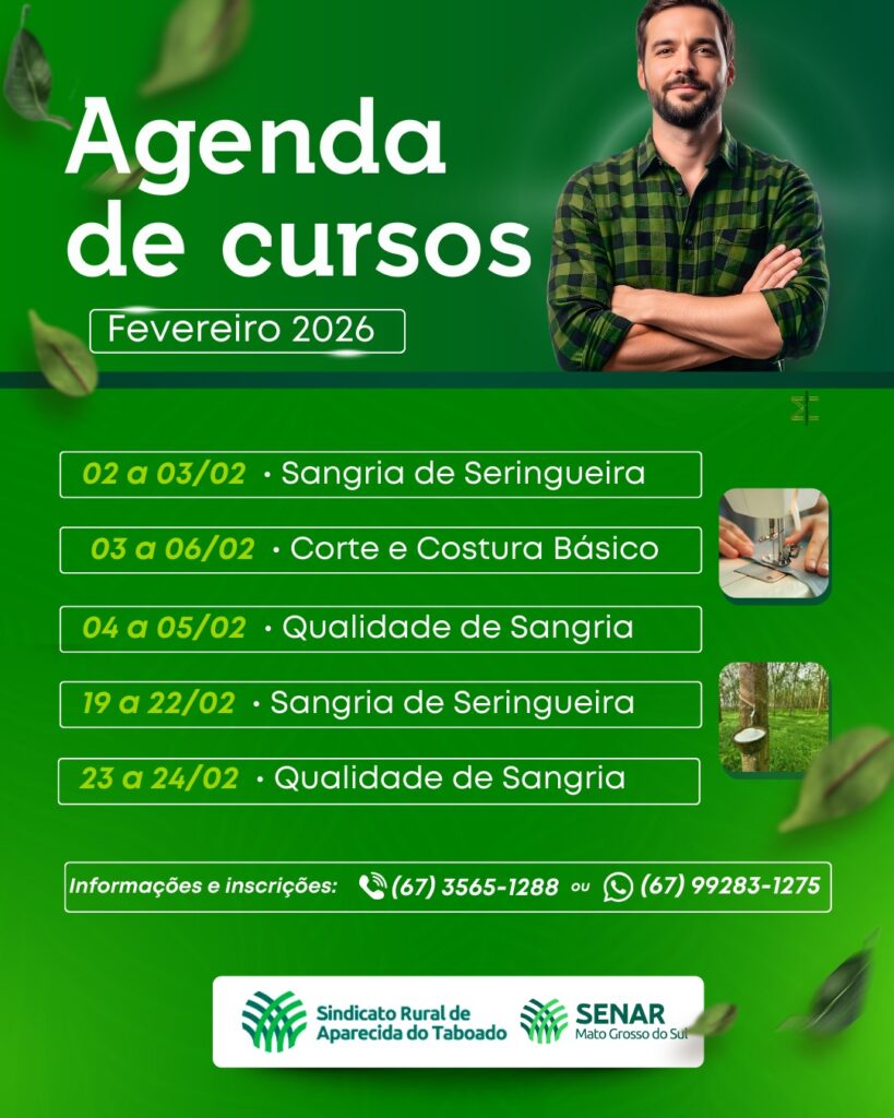 Aparecida do Taboado (MS) – Com 3 cursos disponíveis para o mês de novembro, o Sindicato Rural divulgou a agenda dos cursos gratuitos realizados em parceria com o Senar MS.