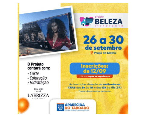 MaisComo parte da programação de aniversário da cidade alusiva aos 74 anos de Aparecida do Taboado, a Prefeitura Municipal, em parceria com a LA’BRIZZA Cosmetics, está promovendo mais uma edição do Projeto