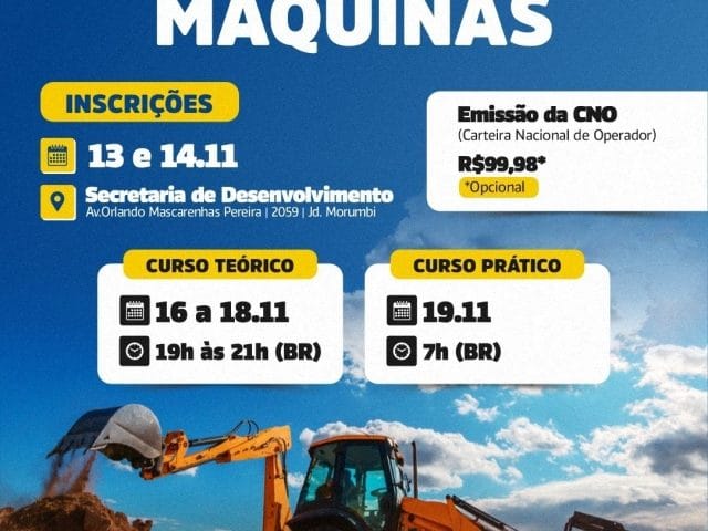 MaisVocê sonha em se tornar um operador de máquinas e iniciar uma carreira promissora? Esta é a sua oportunidade. As inscrições estarão abertas nos dias 13 e 14 de novembro na Secretaria