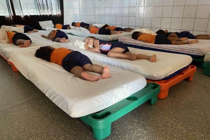 MaisOs Centros de Educação Infantil – CMEIs de Aparecida do Taboado receberam, recentemente, lote de camas empilháveis para os momentos de descanso dos alunos. Cerca de 230 caminhas foram distribuídas entre as