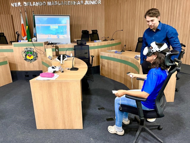 Na tarde da segunda-feira, 1º de julho, o plenário da Câmara Municipal “Vereador Orlando Mascarenhas Júnior” foi palco de um importante momento voltado à inclusão e ao uso da tecnologia na educação especial. A reunião, promovida pela Educação Especial em parceria com a empresa Therafy, reuniu pais de alunos com Transtorno do Espectro Autista (TEA) para uma conversa esclarecedora sobre o uso de óculos de realidade virtual como ferramenta de apoio no desenvolvimento de habilidades socioemocionais, cognitivas e sensoriais.