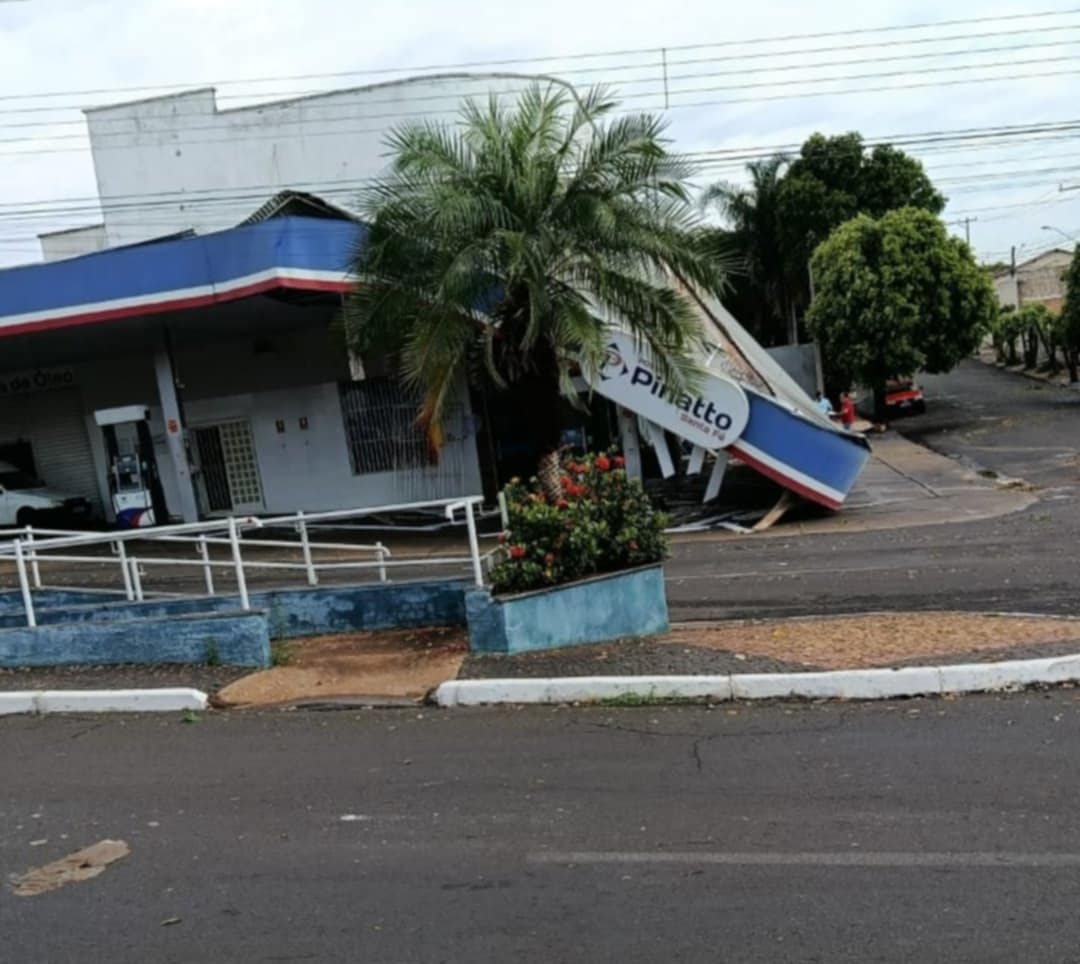 Parte do telhado de um posto de combustíveis na Avenida Conselheiro Antônio Prado, esquina com a Rua 24, também desabou devido à força do vento.