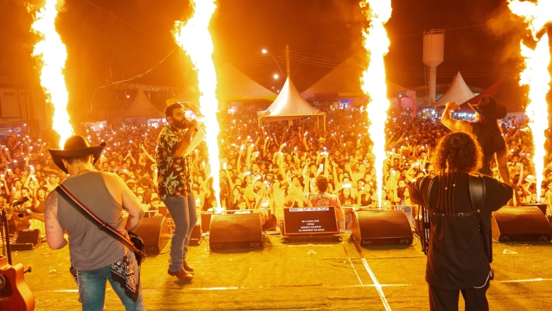 A festa começou ao som da Banda Abre Alas Taboado, que garantiu a animação em todas as noites de folia. Em seguida, o palco recebeu um show brilhante da dupla Us Agroboy, formada por Gabriel Vittor e Jota Lennon, que levantou o público com muita música e carisma.