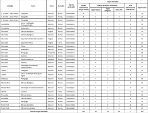 O PSP UEMS 2024 – Notas do Enem está ofertando quase 500 vagas distribuídas em 10 unidades da UEMS. Os cursos disponíveis no PSP não são os mesmos ofertados no Vestibular UEMS 2024, ou seja, o candidato que desejar pode participar dos dois processos seletivos escolhendo cursos diferentes. Confira abaixo os cursos ofertados: