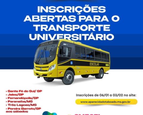 MaisA Secretaria Municipal de Educação informa que estão abertas as inscrições para o transporte universitário. Período de Inscrição: Início: 6 de janeiro Término: 3 de