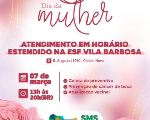 MaisEm celebração ao Dia Internacional da Mulher, a secretaria municipal de Saúde anuncia um evento especial na ESF Vila Barbosa, em Aparecida