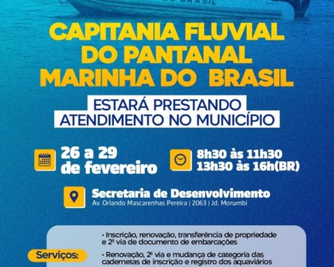 A Capitania Fluvial do Pantanal, Marinha do Brasil, estará oferecendo serviços em Aparecida do Taboado durante o período de 26 a 29