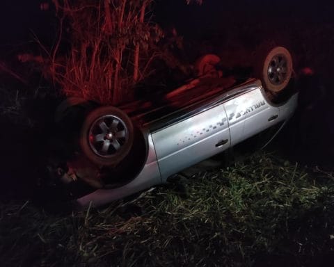 MaisAparecida do Taboado (MS) – Um carro com quatro pessoas capotou na rodovia MS 316, estrada da Lagoinha, no sábado (13), por